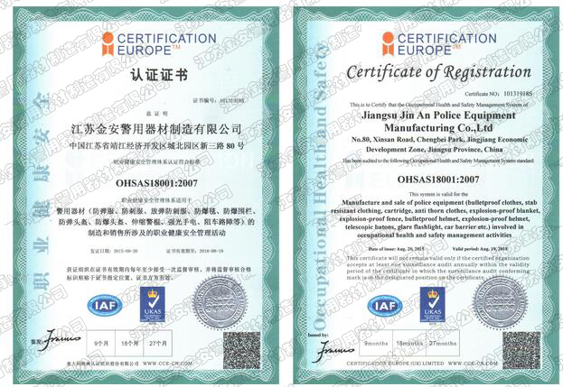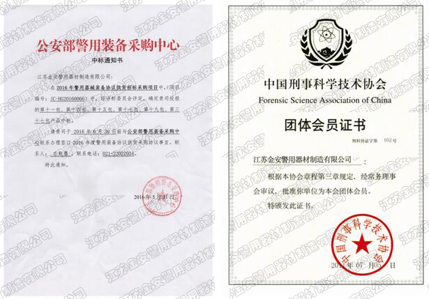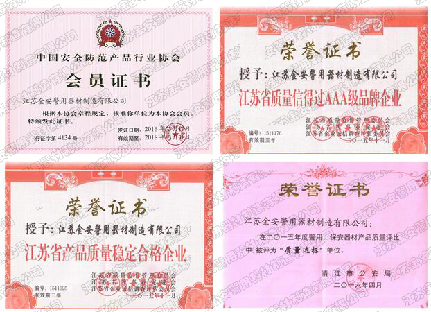 第一批新型單警裝備定點(diǎn)生產(chǎn)企業(yè) 公安部警用裝備采購中心協(xié)議供貨單位 公安部防彈防刺服生產(chǎn)定點(diǎn)企業(yè) 江蘇省公安廳防彈衣入圍企業(yè) 江蘇警用裝備行業(yè)協(xié)會(huì)會(huì)員單位 中國刑事科學(xué)技術(shù)協(xié)會(huì)團(tuán)隊(duì)會(huì)員單位 中國安全防范產(chǎn)品行業(yè)協(xié)會(huì)會(huì)員單位 靖江市保安器材行業(yè)協(xié)會(huì)常務(wù)理事單位 全國警用裝備標(biāo)準(zhǔn)化技術(shù)委員會(huì)通訊委員 江蘇金安警用器材制造有限公司始創(chuàng)于九十年代初,公安部防彈防刺服生產(chǎn)定點(diǎn)企業(yè)、公安部警用裝備采購中心2..